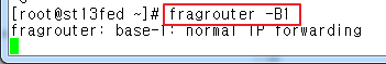 (1) 공격자 PC에서 fragrouter와 tcpdump 실행